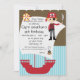 Arrrgh, mateys. This pirate birthday party invitation features a pirate with an eye patch holding a sword and a big pirate ship. Savvy? Completely customisable.