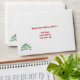 This scarlet red and white Christmas envelope perfectly complements the international "Merry Christmas" festive Christmas tree cards. It includes customisable fields for adding the sender's and recipients' names and addresses in stylish typography.