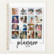 16 picture photo collage with the modren script planner on the bottom you can change