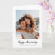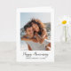 Personalise this modern and trendy anniversary card by adding a photo of the couple. The front features the phrase "Happy Anniversary" in an elegant script font, along with the couple's names and their wedding date. Inside, you will have the option to edit the message. Simply click the 'Edit/Personalise' button to customise the design.