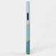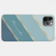 Contemporary girly teal blue and ocean seafoam green coloured striped cell phone case. With room to customise with a name, monogram, or initials of your choice. Beautiful, modern, and cool cover for the trend-savvy and art-loving hip trendsetter, artsy motif lover who wants to protect their phone from dust and dirt, wear and tear. This design is available for Apple iPhone 6, 7, and 8 Plus, 10 or X, XR, XS, 11, 12, 13 Mini, and 14 Pro Max cellphone cases. Show off your style, look fashionable, and feel stylish with a unique design on a mobile device accessory of your choice.