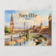 Custom Seville Spain Plaza de Espana Watercolor Postcard