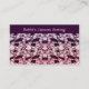 This business card advertises a custom sewing business which specialises in weddings, dress making, alterations, repair and home decor. The colourful fine art design features an intricate abstract pattern of small swirling satin fabric folds in shades of wine and pink. The reverse side has all the pertinent text which can be customised to suit your needs.