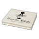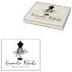 This custom stamp features a sewing mannequin with flowers, a name and slogan.