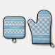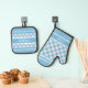 Custom Shabby Chic Light Blue White Gingham Plaid Oven Mitt & Pot Holder Set