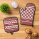 Custom Shabby Chic Red White Gingham Plaid Oven Mitt & Pot Holder Set