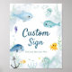 Custom sign with under-the-sea illustrations, ocean theme for a baby shower or birthday party. This custom sign is perfect for a nautical baby shower. With watercolor sea animals, whales, a baby octopus, nautical elements, and seaweeds this sign is ideal for delicate party decoration with an ocean theme. All text is editable so you can change the wording to whatever you need.