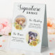 Customise this pet wedding sign with your dog, cat, puppy or kitten favourite photos, names and signature drinks!. COPYRIGHT © 2020 Judy Burrows, Black Dog Art - All Rights Reserved. Custom Signature Drinks Sunflowers Pet Wedding Table Tent Sign