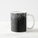 Easily personalise this trendy elegant coffee mug design featuring pretty silver sparkling glitter on a black brushed metallic background.