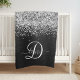 Custom Silver Glitter Black Sparkle Monogram Fleece Blanket