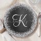 Custom Silver Glitter Black Sparkle Monogram Paper Plate