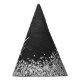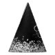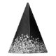 Easily personalise this trendy elegant party hat design featuring pretty silver sparkling glitter on a black brushed metallic background.