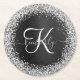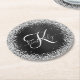 Custom Silver Glitter Black Sparkle Monogram Round Paper Coaster