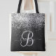 Custom Silver Glitter Black Sparkle Monogram Tote Bag