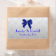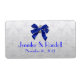 Elegant silver tone mini wine label, with graphics of a lovely silver tone damask pattern and royal blue bow, at the top. Personalise the blue text to suit your event needs. Makes lovely gift labels on mini bottles of wine for your wedding.