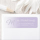 Contemporary modern classic return address label with a light lavender violet, and pastel amethyst purple coloured family name monogram for you to personalise.