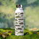 This design features a custom simple fish fisherman water bottle with unique creative hand-drawn artwork, simple minimalist minimal animal woods, a stylish trendy rustic cabin north, camping camp hiking outdoors, lake river water freshwater, fishing fun whimsical cute, creative unusual whimsical whimsy, funny fun template, creative simplistic cute