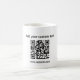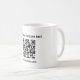 Custom white minimalist qr code simple mug . Add and personalize with your own qr code, logo, text, message, informations, url, website adress, business brand. Simple white black mug personalized for gift , marketing, promotion, coffee, restaurant, work, party’s, employees gift, boss, students,  corporate event trade show, christmas customer gift, business or personal use.