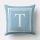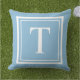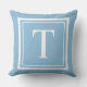 Custom Sky Blue Square Monogram Initial Letter Cushion