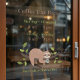 Add adorable charm to your coffee shop with this sweet sloth window cling! Featuring a relaxed sloth sipping coffee on a tree branch, this transparent decal is perfect for glass doors, windows, or mirrors.