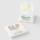 The coasters are gorgeous, a quality feel and heavy weight. They look like a precious archeological find. A rustic stone juxtaposed with a modern floral black and white print. I like the way the print goes slightly imperfect on the cut stone edges giving them a kind-of natural beauty.