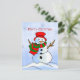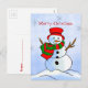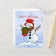 Custom snowman on snow and snowflakes holiday postcard
