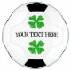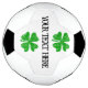 Custom soccer ball with green lucky clover. Personalise with your text. Vintage shamrock logo and text template. Cool sports gift idea for St Patrick's Day, Birthday and more.