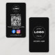 Stylish black business cards with a QR code that you can scan to interact with us on social media. The flexible design is simple to edit and can be customised with your business's logo, graphic or photo, QR code, personalised text, and social media icons. To create a genuinely unique and expert look for your own business, just replace them with your own icons. You could, for instance, add accounts from other social networking platforms like Pinterest, Twitter, WhatsApp, YouTube, and so on.
