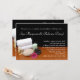 Invite friends and guests to a relaxing spa birthday party or other occasion with this elegant spa, massage therapy or salon setup design. Still life scene includes items that would be used for a spa treatment including mineral bath salts soak, scented or natural body oil, hot stones for heated massage, clean white towels and a pretty pink flower, on a wood table with black background. Show your salon business class and style with this elegant photograph depicting the relaxation and luxury of soothing spa, pedicure and facial services.