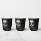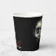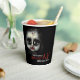 Imagine your party guests drinking out of this attention getting custom party cup featuring a creepy doll's head with pale face and bulging dark eyes. Speckles of blood dot her forehead in this haunting graphic. A funny text template is included to personalise this design with the party or event hosts names. You can edit or keep this text as written. These paper cups are a great choice for a memorable Halloween Party.
