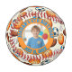 Create a memorable keepsake with this custom birthday souvenir baseball featuring a fun all-over pattern of sports balls and a personalized center photo. Customized with the birthday child’s name, age, and celebration date, this baseball makes a unique and meaningful memento for sports-loving kids.