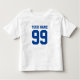 Custom sports football jersey for toddler . Custom kids clothing for boys and girls. Personalise with name of child. Cute gift idea for 1st Birthday. Make your own team clothes for grandchild, grandson, granddaughter, nephew, niece etc. Kids sportswear. Suitable for all sports; soccer, volleyball, baseball, softball, basketball, hockey, football, rugby etc. Fun presents for new parents / mum and dad. Blue or custom colour.