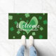 Custom St Patricks Day door mat with lucky clovers