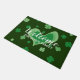 Custom St Patricks Day door mat with lucky clovers. Make your own personalised indoor or outdoor doormat sign with custom background colour and text. Add your own welcome message, business name, surname, initial letters or funny quote. Fun gift idea for new home, party location, new office, relocation, store, shop, professional company office, business etc. Personalizable template with elegant typography. Create your own classy entry mat / rug for front door / entryway or hall. Customisable home decor / decorations for Irish family. Green design with shamrocks and hearts.