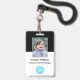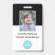 Create your own custom, personalised, durable PVC plastic, won't fade or tear, cool modern trendy stylish black and white, name photo ID badge, with choice of attachments - lanyard, metal clip, retractable, or none. To personalise, enter the name of the employee / staff / executive, their designation, and any additional information like employee ID, issue & expiry date of the badge, if lost return to & the address, etc. Next add the photo of the employee / staff / executive, add the business / company logo, and add the barcode. While you type/design, you'll be able to see a preview of your badge, throughout. Great for small business, corporate, school, restaurant, office, concert, retail, hospital, clinic, and for employee, staff, doctor, teacher, student.
