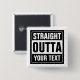 Custom STRAIGHT OUTTA square box pin buttons. Make your own custom STRAIGHT OUTTA badge. Funny typography design with big letters. Add your own city, parody or quote to this template / meme generator. Cute black and white internet meme gift idea for men, women and teen kids. Cool personalised examples: Straight outta bed. Straight outta money. Straight outta ideas. Straight outta coffee. Straight outta prison. Straight outta the gym. City names; compton chicago new york LA boston brooklyn etc.