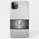Contemporary close-up IMAGE of white coloured golfball skin texture pattern, and faux shiny silver metal looking banner to customise or personalise with name, initials, or monogram of your choice. Beautiful, modern, and cool cover for the trend-savvy and art-loving hip trendsetter, artsy motif lover who wants to protect their phone from dust and dirt, wear and tear. This design is available in Apple iPhone 6, 7, 8, 10 or X, XR, XS, 11, 12, 13 Mini, 14, 15 Plus, and Pro Max cellphone cases. Show off your style, look fashionable trendy, and feel stylish with a unique design on a mobile device accessory of your choice.