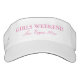 Personalised name sun visor cap hats for fun girls weekend, birthday, reunion, holiday break etc. Add custom date and destination location ie las vegas 2015 2016 2017 2018 etc. Sporty sun visor cap for trip with friends or bachelorette party with brides crew. Create your own for bridesmaid, flower girl, maid of honour, mother of the bride, etc. Personalizable with team name, monogram initial letter, funny quote or saying. Cute favour gift idea for elegant wedding bridal shower, girls weekend, girls night out or bachelorette party. Customisable background colour. Also nice for the beach. Unique monogrammed presents for friends and family. Stylish script typography. Elegant design with pink letters. Suitable for all sports and games like tennis, running, golf, beach volleyball, basketball, softball, baseball, running, lacross, sailing and other outdoor sports.