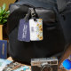 Personalize your travel gear with these vibrant watercolor floral luggage tags. The design showcases a bright arrangement of sunflowers and lavender sprigs against a crisp white and deep navy contrast. These durable tags are ideal for identifying your suitcase on a summer honeymoon or gifting to your bridal party.