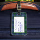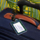 Handsome luggage tag done in the colourful blue and green Sutherland clan tartan plaid pattern. A green edged white text area, on the front has blue text ready to personalise with your information. The perfect way to spot your luggage, and makes a great gift idea.