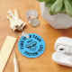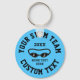 Custom swimming team keychain for swimmers. Add your own personalised text. Modern design with swim goggles logo or custom icon. Blue pool colour background.