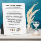 Personalise this custom table sign easel with your company logo and custom text. It's printed on hardboard panel with a UV resistant glossy finish. It's ideal for use as a portable table top sign for business. Available in small square 5.25 inch x 5.25 inch, small 5 inch x 7 inch, and large 8 inch x 10 inch. No minimum order quantity and no setup fee.