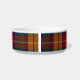 Traditional colourful Buchanan clan tartan plaid around this white ceramic dog bowl. Custom white text is ready to personalise with your pet's name. Makes a great gift idea to a new dog owner.