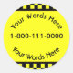 This sticker is decorated with black and yellow chequered bars and can be customised.