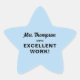 Custom Teacher Name Excellent Work! Pastel Blue Star Sticker