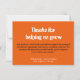 Celebrate your amazing teacher with this elegant thank-you card featuring a floral orange theme and a heartfelt message: “Thanks for helping me grow.” Personalise it with your school name and graduating class for a thoughtful and memorable keepsake. Perfect for teacher appreciation parties, end-of-year gifts, or classroom celebrations. The soft floral design in orange (colour code #EF5B0A) adds a warm and joyful touch to your message.