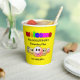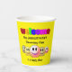 Bright yellow Teacher's Welcome to My Class paper cups, showing a bright colourful WELCOME followed by wording which reads (insert your name here)'S CLASS IS A HAPPY PLACE. This text is CUSTOMIZABLE so you can add your name and class or create your own text. There is also a smiling face icon. You can use these Welcome party cups to welcome your new students back to school with a special welcome party. Matching party supplies and gifts are available. Other colours available.