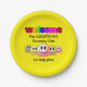 Bright yellow Teacher's Welcome to My Class paper plates, showing a bright colourful WELCOME followed by wording which reads (insert your name here)'S CLASS IS A HAPPY PLACE. This text is CUSTOMIZABLE so you can add your name and class or create your own text. There is also a group of smiling face icons. You can use these Welcome party plates to welcome your new students back to school with a special welcome party. Matching party supplies and gifts are available. Other colours available.