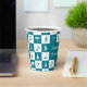 A great gift for any musician or music lover, this cool design features a modern and stylish teal and white check squares pattern with various musical notes and musical instruments in alternating colours. It includes pianos, trumpets, drums and saxophones with music notes and treble clefs.