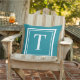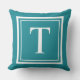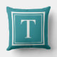 Custom Teal Blue Square Monogram Initial Letter Cushion